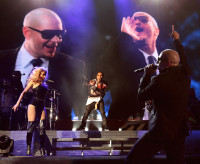 Pitbull brings out Marc Anthony for a duet of their hit "Let It Rain" during his concert at the Hollywood Bowl in Los Angeles. View Photo