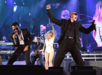 Pitbull brings out fellow BMI member Chris Brown for a duet of "International Love" during his concert at the Hollywood Bowl in Los Angeles. View Photo