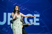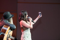 BMI songwriter Rozzi and guitarist Daniel Labbe take a selfie from the stage of the Restaurant Leadership Conference. View Photo