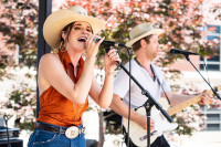 Julia Cole brings surprise guest Charles Esten to the stage at the Ryman Block Party Powered by BMI during the 2022 CMA Fest. View Photo