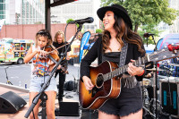 Julia Cole is feeling the beat during her set at the Ryman Block Party Powered by BMI. View Photo