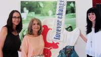 Pictured at the third installment of the Gibson Guitartown art sculptures unveiling on July 17 are (L-R): BMI's Lisa Feldman; Diane Lee, widow to Arthur Lee of the band LOVE and Kara Wright, Manager of Catalogue Development, peermusic. View Photo