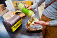 Tacodeli provides a variety of taco and homemade sauces in the BMI Lounge. View Photo
