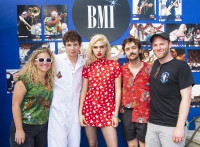 Greta Van Fleet poses for a photo with BMI’s Nina Carter and Brandon Haas during Hangout Music Festival on May 20, 2018, in Gulf Shores, Alabama. View Photo