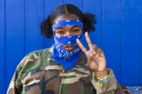 Leikeli47 poses for a photo backstage during Hangout Music Festival on May 19, 2018, in Gulf Shores, Alabama. View Photo