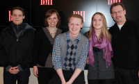Zach Sobiech brought the family along to his signing at the BMI offices in New York. Pictured are Zach’s brother Sam, Zach’s mother Laura, Sobiech, his sister Grace, and Zach’s father Rob. View Photo