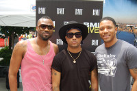 BMI’s Wardell Malloy (far left) and Ian Holder (far right) gather for a photo with performer Ronnie “RO” James at the third installment of the BMI-sponsored 2nd annual 7 World Trade Center Festival, July 13 in New York. View Photo