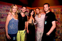 BMI’s Samantha Cox (second from left), Jake Simon (fourth from right) and Haley Hard (second from right) pause for a photo with the band, Ambassadors, after their rousing performance at BMI’s New Music Seminar showcase, held June 19 at the Gramercy Theatre in New York. View Photo