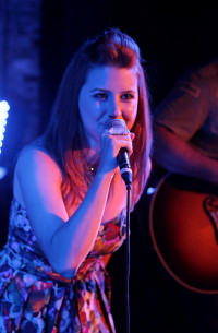 Jessica Roadcap smiles in between songs during the May 16th installment of BMI Buzz at the Basement. View Photo