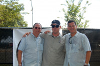 BMI’s Charlie Feldman and Mark Mason greet C3’s Charlie Walker (center) at Lollapalooza. View Photo