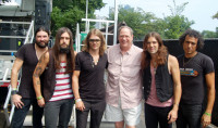 BMI’s Charlie Feldman (3rd from right) greets BMI stage act Dirty Sweet at Lollapalooza. View Photo