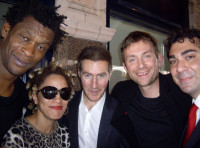 Massive Attack’s Daddy G and his guest, Massive Attack’s 3D, multiple BMI Award-winning singer/songwriter Damon Albarn, and BMI’s Brandon Bakshi enjoy the 2009 Ivor Novello Awards ceremony, held May 21 at the Grosvenor House in London. View Photo
