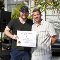 KWSWF’s Charlie Bauer, Chris Young, BMI’s Mark Mason and Mayor Craig Cates gather for a photo after presenting Young with a certificate of achievement during Key West Songwriter’s Festival on May 9, 2015, in Key West, FL. View Photo