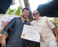 Lee Miller receives a certificate of achievement for 1 million plus broadcast performances from BMI’s Leslie Roberts at Bluebird at Blue Heaven presented by NSAI during the Key West Songwriter’s Festival on May 7, 2015, in Key West, FL. View Photo