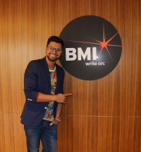 Pictured at the 2014 MonitorLatino Radio Awards (L–R): La Nueva Rebelion members flank BMI's Krystina DeLuna (center) and BMI singer-songwriter Juan Villareal. View Photo