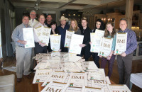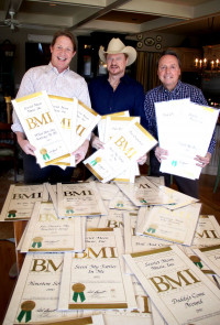 The BMI Nashville Writer/Publisher Relations team presents Paul Overstreet with dozens of Million-Air Certificates. View Photo