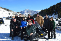 Aimee Tait, BMI’s Mark Mason, Due West’s Matt Lopez, Jesse Rice, GAC’s Stacy McCloud, Due West’s Tim Gates, BMI’s David Preston, Due West’s Brad Hull, GAC’s Brett Johnson, and BMI’s Brooke Ivey prep for a day on snowmobiles during the 2014 Crested Butte Songwriters Festival. View Photo