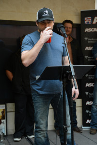 Life imitating art: “Boys Round Here” co-writer Rhett Akins brings the song’s iconic “chew tobacco, chew tobacco, chew tobacco – spit” lyrics to life during presentations. View Photo