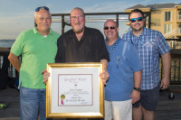 Steve Cropper receives a Million-Air Award during the Key West Songwriters Festival Kick Off Party at the Sunset Pier on May 10, 2017. View Photo