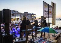 Steve Cropper and the Dylan Altman Blues Band perform during the Key West Songwriters Festival Kick Off Party at the Sunset Pier on May 10, 2017. View Photo