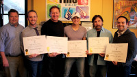 Pictured backstage during the 2014 Crested Butte Songwriters Festival are (l-r): Due West’s Brad Hull and Matt Lopez, BMI’s David Preston, Due West’s Matt Lopez, BMI’s Brooke Ivey, and Steve Snyder. View Photo