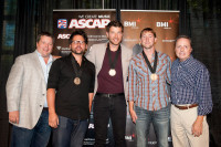 Broadcast Music, Inc. toasted the team behind Brett Eldredge’s No. 1 smash “Don’t Ya” at Nashville’s Cabana. “Don’t Ya” marked the first trip to the top of the charts for Eldredge, who also celebrated a recent CMA New Artist of the Year nomination. Pictured are (l-r): BMI’s Bradley Collins, co-writer Chris DeStefano, Brett Eldredge, co-writer Ashley Gorley and BMI’s Jody… View Photo