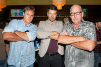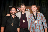 Pictured at the “Don’t Ya” No. 1 party in Nashville are (l-r): co-writer Chris DeStefano, Brett Eldredge and co-writer Ashley Gorley. View Photo