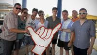 BMI's Mark Mason, Wild Cub band members and Key West Songwriters Festival Charlie Bauer pause for a photo backstage at Hangout Music Fest on Saturday, May 18, 2013, in Gulf Shores, AL. View Photo