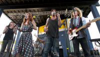 The Weeks gather in front of the Hangout cab at the BMI Stage during the 2013 Hangout Music Festival on May 17, 2013 in Gulf Shores, AL. View Photo