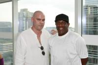 Producer Isaac Hayes III “Ike Dirty” poses with Michael Tolcher at the BMI ESCAPE Pool Party. View Photo