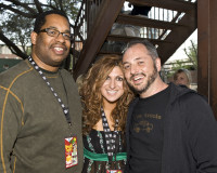 BMI's Anne Cecere with ESPN's Mitchell and Honeypot's John Anderson at BMI's Howdy Texas Party at Stubb's BBQ in Austin, TX, March 17, 2009. View Photo