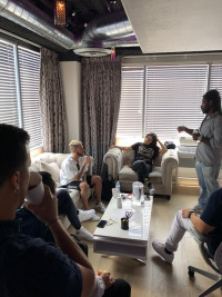 Warner/Chappell’s Lazaro Hernandez, Ferras, Jazelle Rodriguez and Warner Music Group’s David “Saint” Fleur discuss music and brainstorm during the BMI, Warner/Chappell and Warner Music Group “Write On” song camp at the Atlantic Records Studio in Los Angeles. View Photo