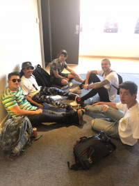 Matt Hunter, Felipe Ospina, Conor Mason, Patrick Ingunza and Oscarcito take a break from creative brainstorming at BMI, Warner/Chappell and Warner Music Group “Write On” song camp at the Atlantic Records Studio in Los Angeles. View Photo