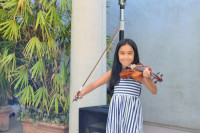 Alessandria Sandoval, student from Castelar Elementary, performs for the crowd. View Photo