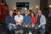 (L-R) Adam Smalley, Nathan Barr, Peter Golub, BMI’s Tracy McKnight, and Ed Shearmur during the BMI Composer Lab at Bandrika Studios in Tarzana, CA. View Photo