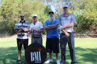 Matt Koskenmaki, Arabian Nazel, John Nooney, Bob Sims pose for a photo during BMI’s sixth annual golf tournament in support of Education Through Music. View Photo