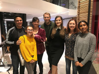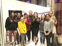 (L-R) BMI’s Reema Iqbal, mentor Tony Morales, student Sera Hornstein, mentor Rebecca Kneubuhl, University High School music director Micah Byers, student Francesca Borchardt, mentor Cindy O’Connor, student Charu Balamurugan and BMI’s Natalie Baartz gather for a photo during the Uni Music Mentorship program. View Photo