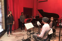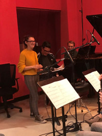 Student Sera Hornstein enjoys the recording session during the Uni Music Mentorship program. View Photo