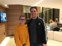 (L-R) Student Sera Hornstein and mentor Tony Morales pause for a photo during the Uni Music Mentorship program in Venice, CA, on November 25. View Photo