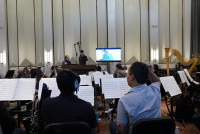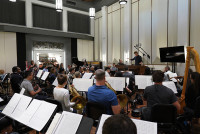 Sage Lewis leads a 32-piece orchestra at BMI’s 22nd annual Conducting Workshop held on August 24, 2019 at Nathan Barr’s Bandrika Studios in Tarzana, CA. View Photo