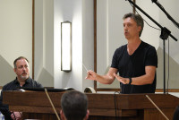 BMI composer and workshop participant Adam Schoenberg directs musicians during the final scoring session of BMI’s 22nd annual Conducting Workshop held on August 24, 2019 at Nathan Barr’s Bandrika Studios in Tarzana, CA. View Photo