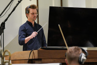 BMI composer Sage Lewis leads the orchestra during BMI’s 22nd annual Conducting Workshop held on August 24, 2019 at Nathan Barr’s Bandrika Studios in Tarzana, CA. View Photo