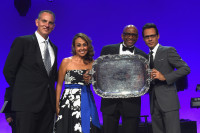 Pictured at the 22nd annual BMI Latin awards at the Fontainbleau hotel in Miami Beach, Florida (l-r) are: BMI Senior Vice President, Writer/Publisher Relations Phil Graham, BMI Vice President BMI Vice President, Latin Music Delia Orjuela, BMI Latin Songwriter of the year Horacio Palencia & President and CEO, Mike O'Neill. View Photo