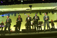 Pictured performing at the 22nd annual BMI Latin awards at the Fontainbleau hotel in Miami Beach, Florida (l-r) are: Charlie Aponte, Carlos Vives, Oscar D’Leon, Jose Albert “El Canario” and Marc Anthony. View Photo
