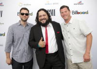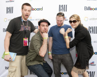 Midem's JP Bommel (far right) and Tucker Jameson pause for a photo at the BMI & Billboard Acoustic Brunch. View Photo