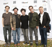 BMI's David Claassen (far left) catches up with Gringo Star at the BMI & Billboard Acoustic Brunch. View Photo