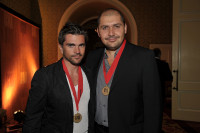 Panelists Common and Salaam Remi catch up before jumping in to BMI’s How I Wrote That Song panel in Los Angeles. View Photo