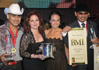 2009 Latin Awards: L to R: Espinoza Paz, Songwriter of the Year; Gloria Estefan, 2009 Icon; BMI’s Delia Orjuela; and Javier Sanroman, songwriter of Song of the Year (“A Ti Si Puedo Decirte”). View Photo