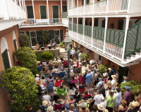 A crowd gathers for Alexis Marceaux's set at the Historic New Orleans Collection during French Quarter Festival. View Photo