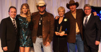 Pictured at the 2009 NSAI Awards dinner and Nashville Songwriters Hall of Fame ceremony are BMI’s Jody Williams, Taylor Swift, Toby Keith, Kye Fleming, Wynn Varble, and BMI’s Phil Graham. View Photo